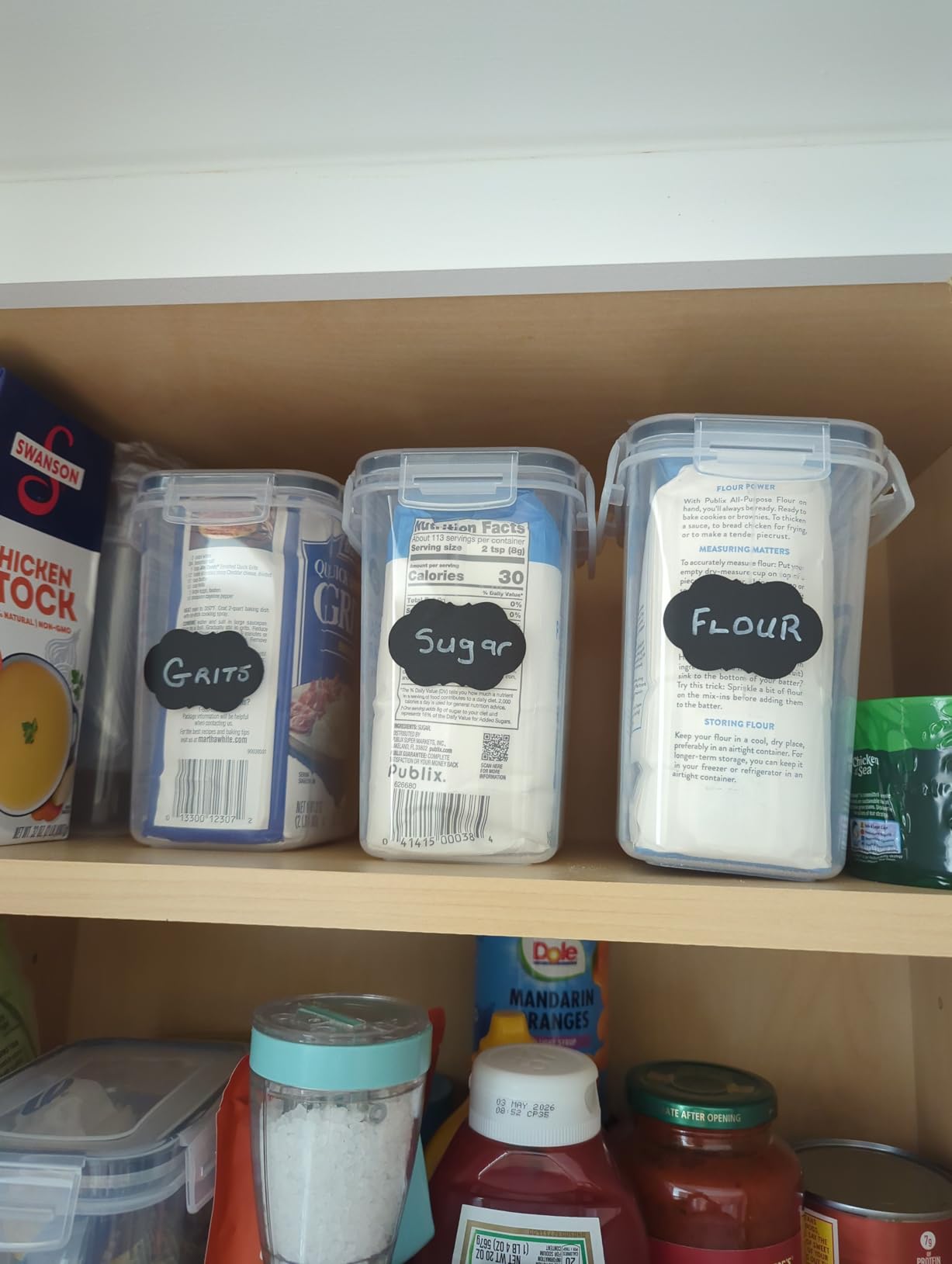 These containers are perfect for storing dry foods such as cereal, flour, sugar, pasta, rice, and snacks. Their stackable design helps maximize space in your pantry.
