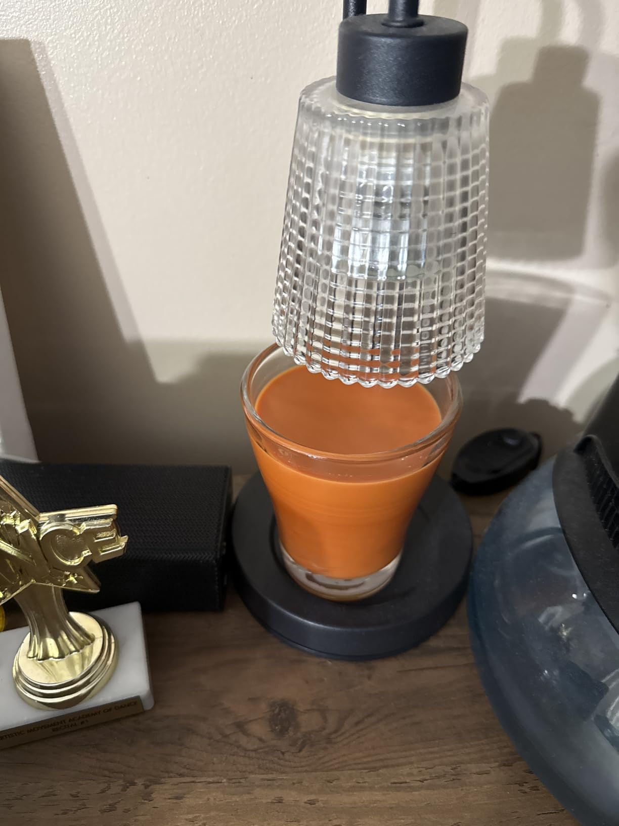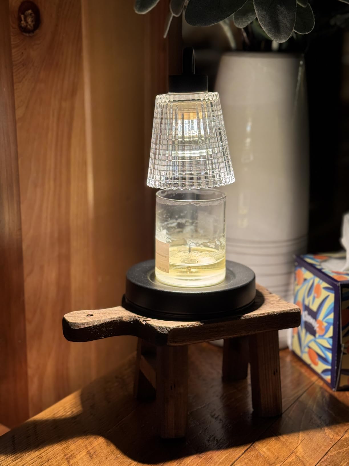 The Candle Warmer Lamp gently melts candles from the top down, providing a safe and clean ambiance without an open flame.