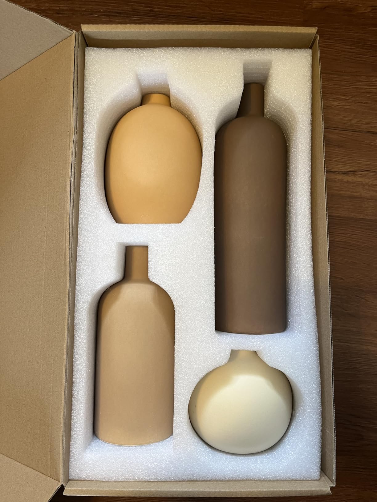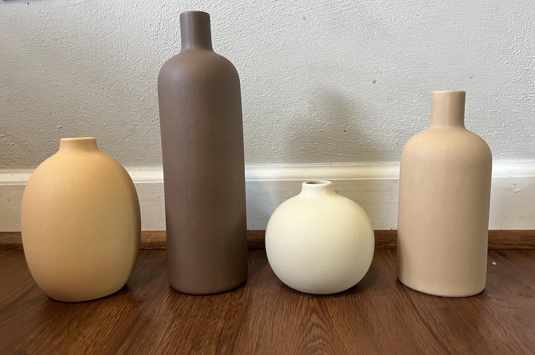 The set includes vases measuring approximately 10 inches, 6.9 inches, 5.7 inches, and 3.74 inches in height.