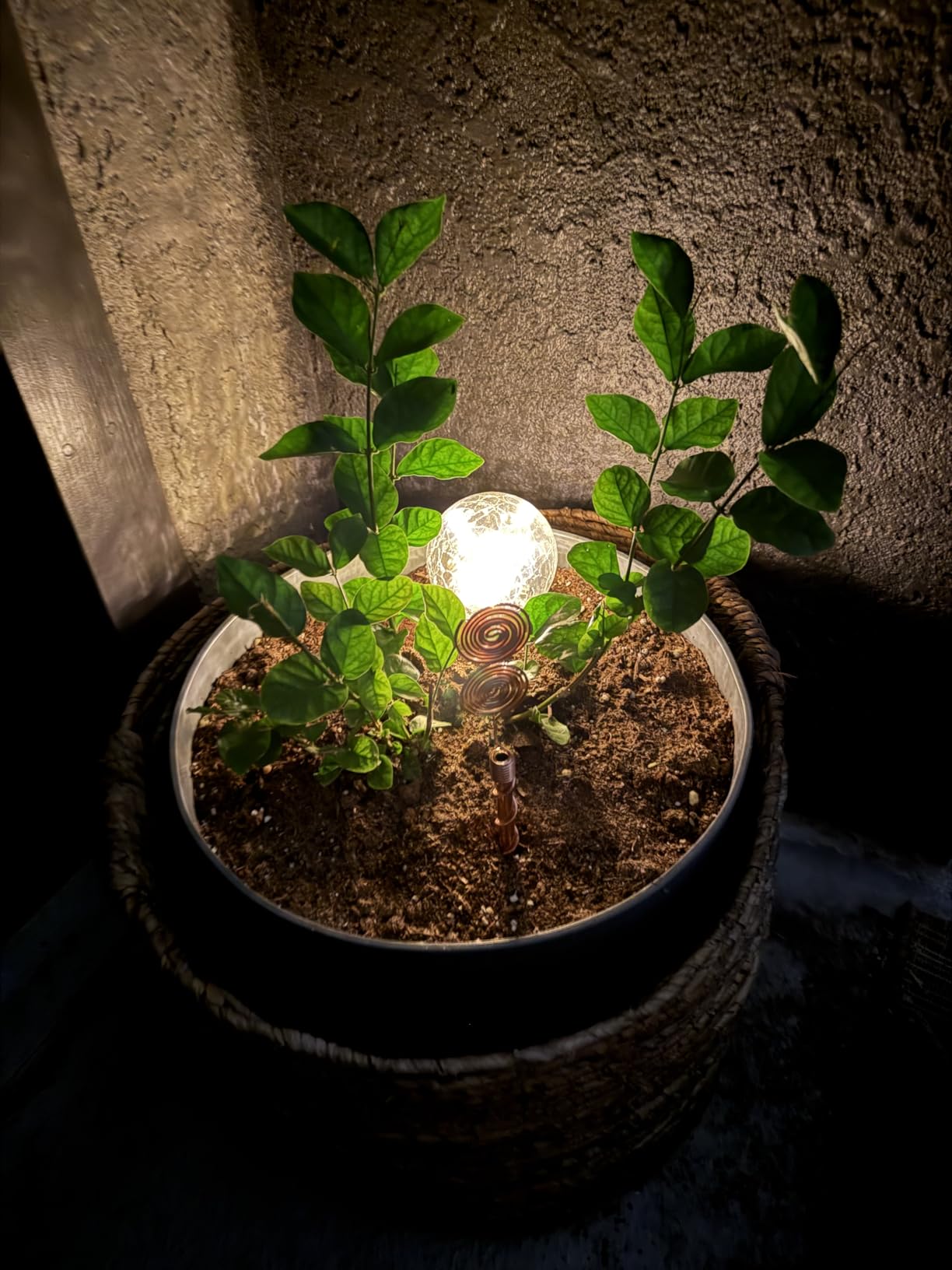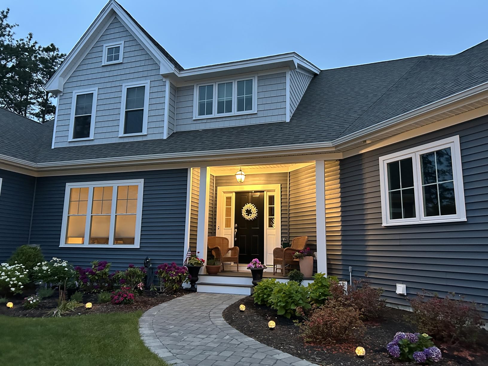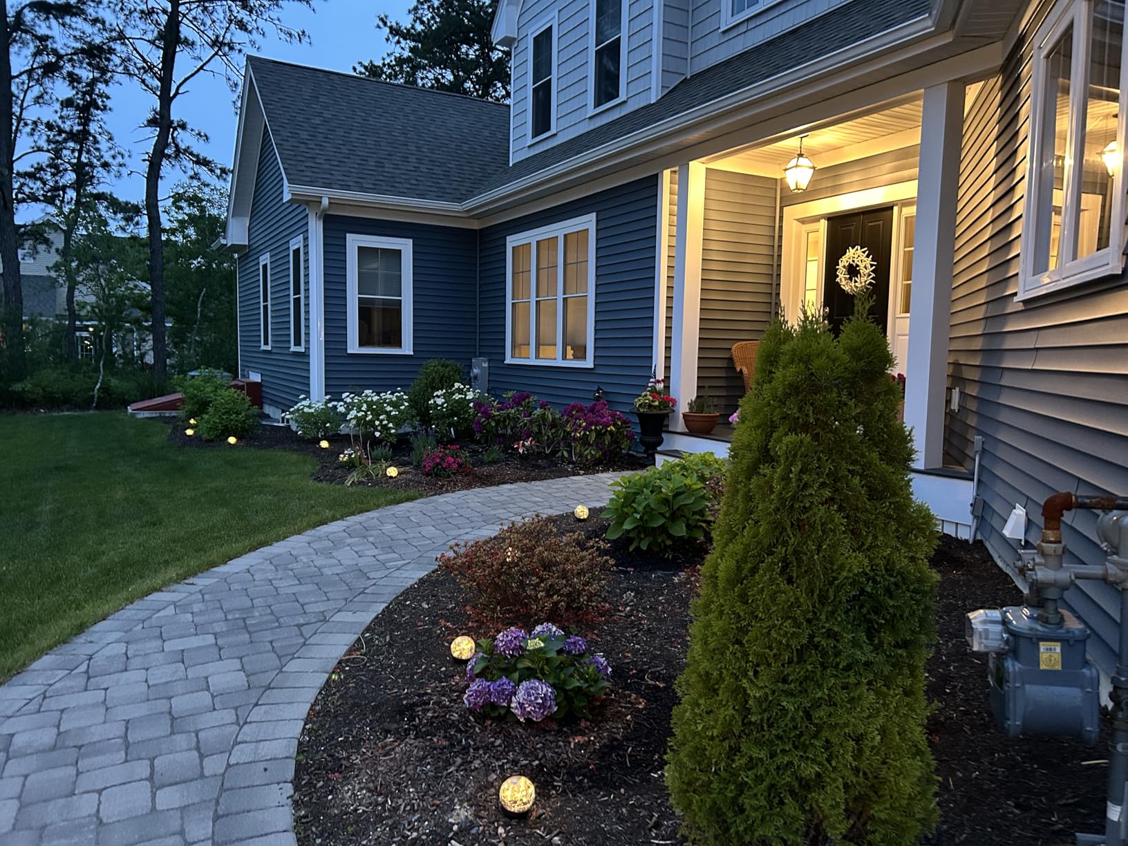 The lights use energy-efficient LED bulbs, providing a warm illumination.