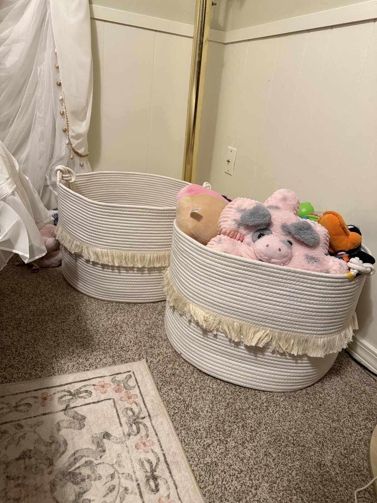 This versatile basket is perfect for storing blankets, pillows, toys, laundry, and even baby diapers, helping you keep your space organized.