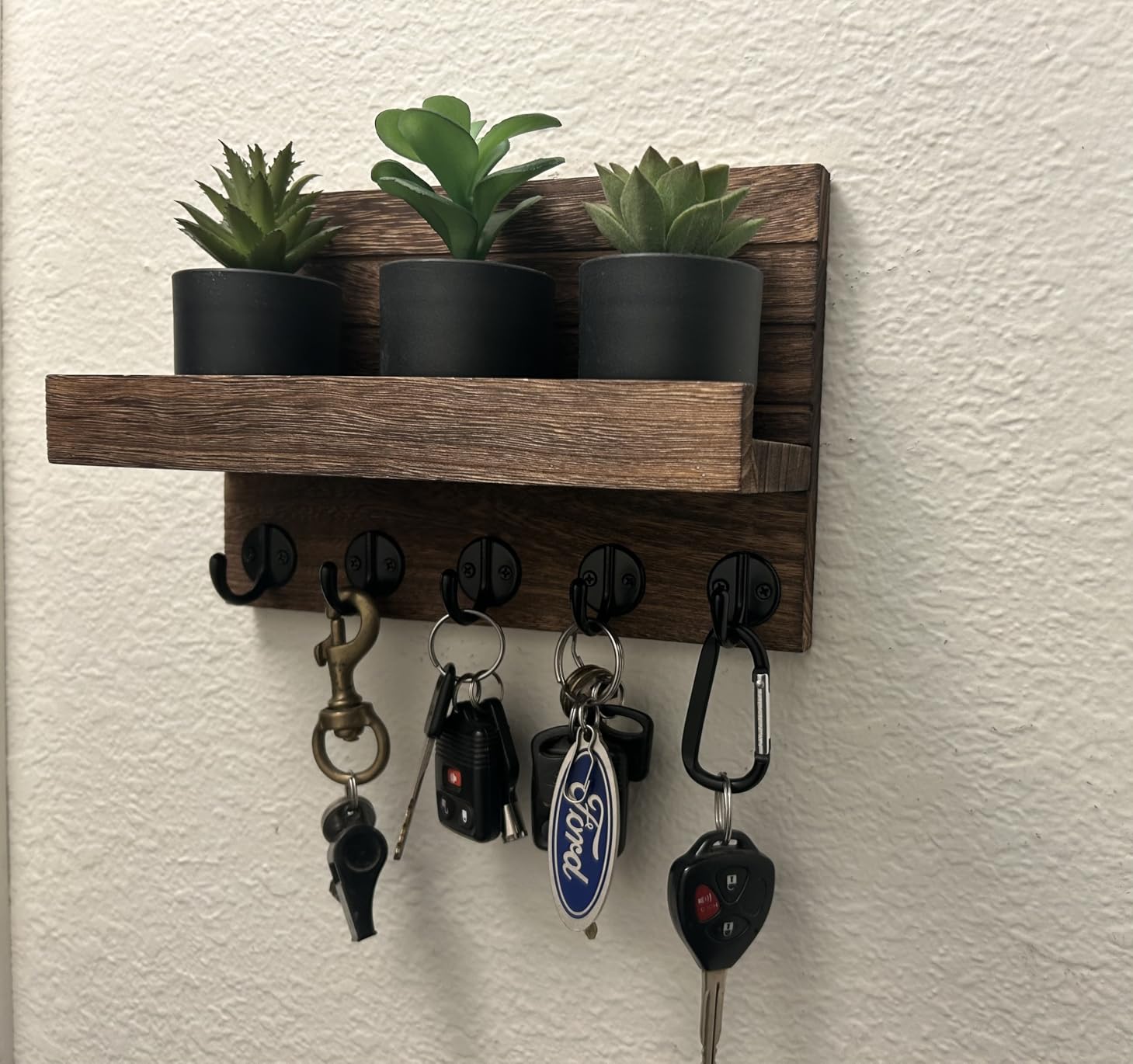 The key holder features 5 large hooks, perfect for bags, coats, and umbrellas.