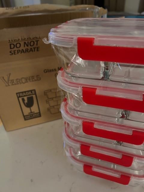 This set includes 5 glass meal prep containers with 3 compartments each.