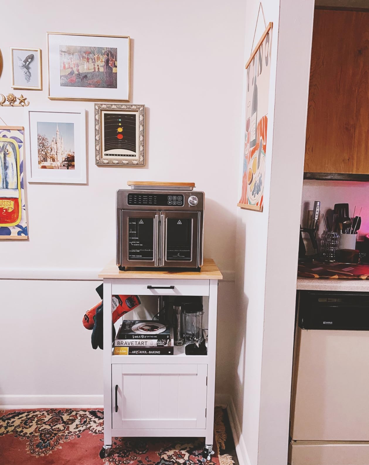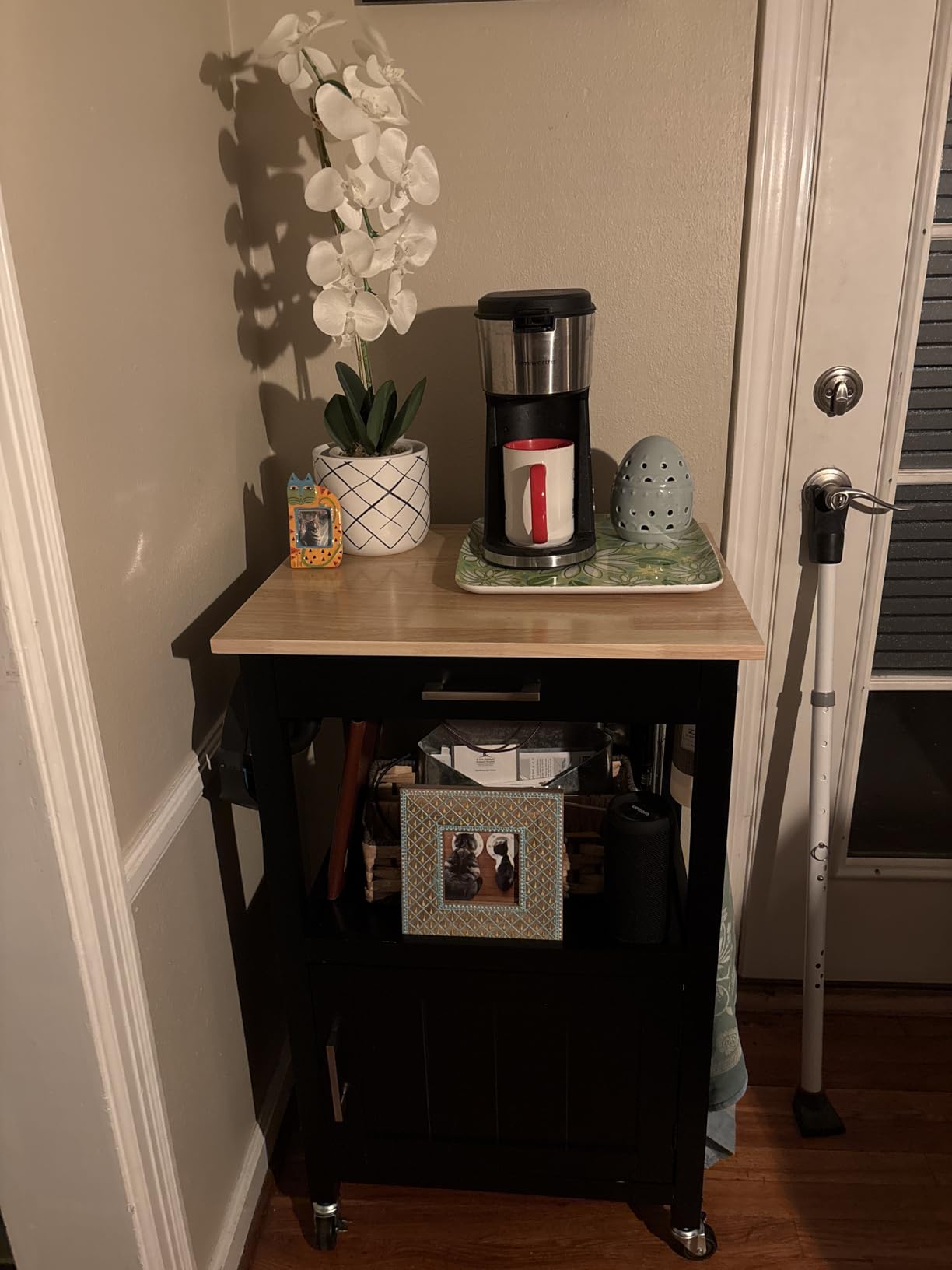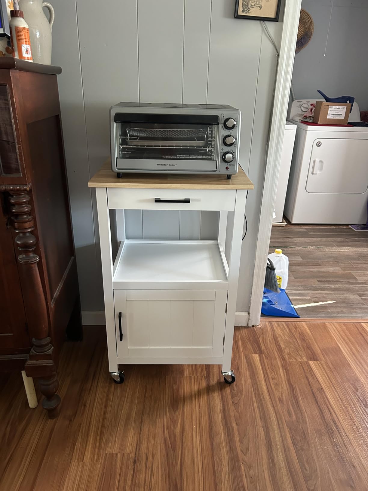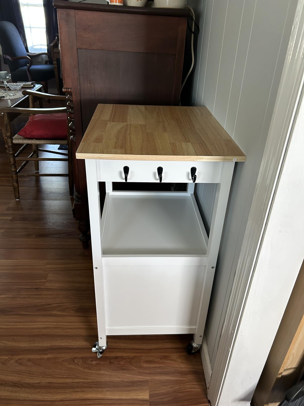 You can easily clean the kitchen cart by wiping it with a damp cloth.